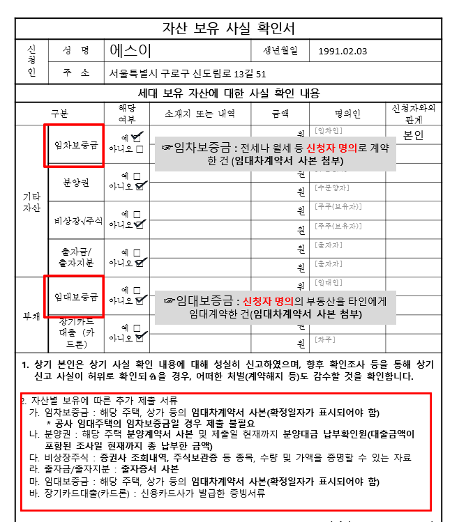 4. 자산보유사실확인서 (홈페이지 다운로드)